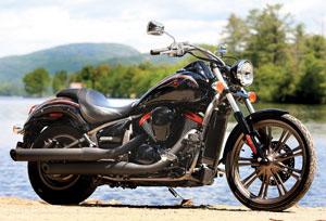 All three models share nearly identical drivetrains. The 903cc V-twin blends traditional touches many cruiser riders demand with modern technology that provides smoother running and allows Kawasaki to meet proliferating noise and emissions standards. Thus the engine spins a single crankpin to provide the old-style V-twin cadence, but a gear-driven balancer and rubber engine mounts keep the worst vibes away from the rider. Electronic fuel injection, liquid cooling, overhead cams and four valves per cylinder improve efficiency, but the radiator is hidden between the front downtubes of the frame, and the cylinders are finned, just like an air-cooled cruiser of yore. Kawasaki says the V-twin produces a peak 58.2 lb-ft of torque at 3,500 rpm. Power is conveyed to the rear wheel through a five-speed tranny with belt final drive.