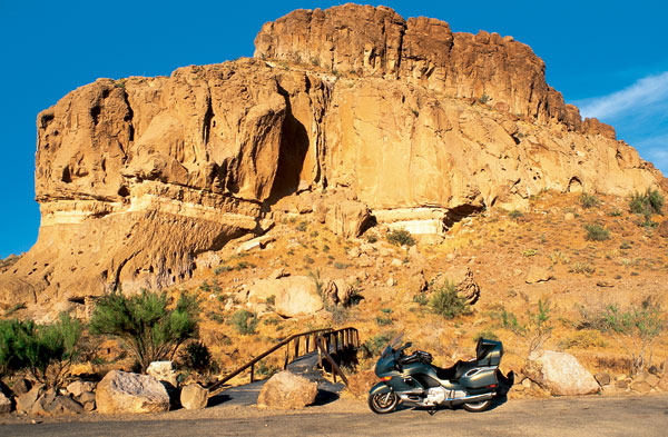 The road dead-ends at this tiny copper-mining town resting at an elevation of 4,000 feet. Despite its isolation, this spot is a meeting ground for sporting riders because of the 75 curvaceous, lonely miles between Prescott, U.S. 93 and here. The Miner’s Diner also draws the ravenous, because you can expect fulfilling victuals in a mining town, and this establishment doesn’t disappoint. Tours of the mine are also available, by appointment only: (928) 633-3490.