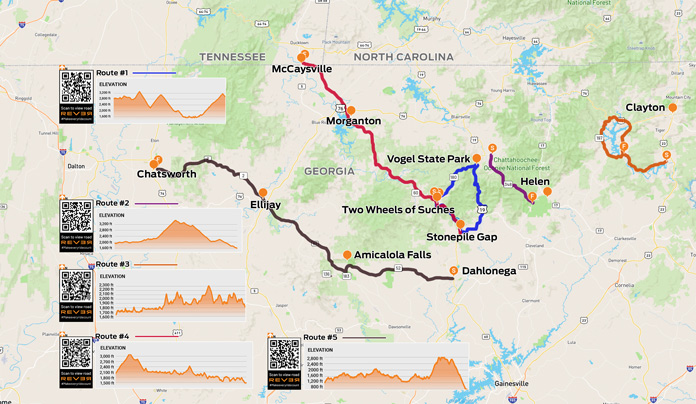Scan QR codes above or click Route #1Route #2, Route #3, Route #4, or Route #5 to view routes on REVER