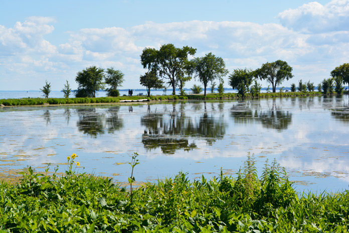 Along U.S. 151, there are also numerous beaches, but I was focused on riding, so I continued my journey north until reaching Sherwood and turning west on State Route 114. On the north side of the lake, I pulled into Heckrodt Wetland Reserve, where I spent some time exploring the trails on foot, which gave me a chance to admire the wildflowers and a bustling butterfly garden. With daylight burning, I continued to Menasha, where I dealt with some construction. Then on to Neenah and ultimately Oshkosh, where I stopped at the north tip of Menominee Park beside a cove and a thin peninsula that contained a paved path suitable for pedestrians and bicyclists. From that vantage point, I could see across the lake, with the boat traffic one would expect on a holiday weekend. Back on the bike, I continued through Oshkosh and stumbled across a classic car show held in South Park. As a classic truck owner, I felt obligated to stop and walk around the park. Needing to rendezvous with family that evening for dinner and some college football, I then proceeded southwest on State Route 44 before returning to Ripon just as the night game was about to kick off.