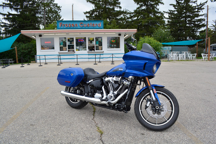Tuesday marked my return to Milwaukee. I headed out on SR-23 before eventually making it to SR-175, which I would follow all the way back. Not having to worry as much about the navigation, I spent time reflecting on the bike I’d been riding all weekend. The heart and soul of the Low Rider ST is the 117ci Milwaukee-Eight V-Twin, which is oil-cooled and cranks out 114 hp and 128 lb-ft of torque. This is a monster of a motor in a Harley that weighs 712 lb, which is svelte compared to the 838-lb Road Glide that comes with the same engine. Rolling on the throttle, especially in Sport mode, makes for spirited launches off the light that are complemented by a throaty growl from the 2-into-1 pipes. The fairing offers decent wind protection, and the dash display is radically improved over the minuscule readout on 2024 models. I was relieved to see an analog display, as the previous digital dash was difficult to discern. The Blue Burst paint (an $850 upgrade) is striking and more eye-catching than the Billard Gray and Vivid Black color options. Starting at $24,199, this is one of the most affordable touring bikes in Harley-Davidson’s lineup. My only issue with the Low Rider ST is the 27-inch seat height. I’m 6-foot-1 and have a 34-inch inseam, so the ergonomics are a little snug for my liking, but as the name implies, this is a Low Rider.
